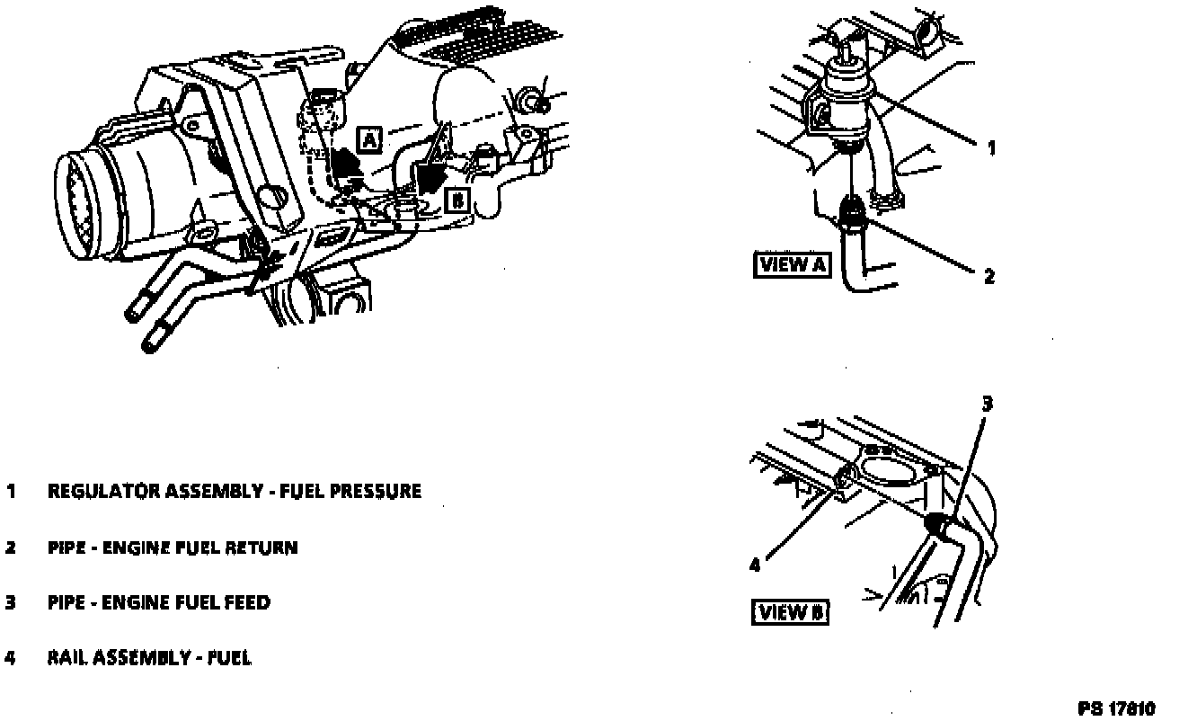 2. Fuel feed and return pipes to fuel rail and fuel pressure regulator.