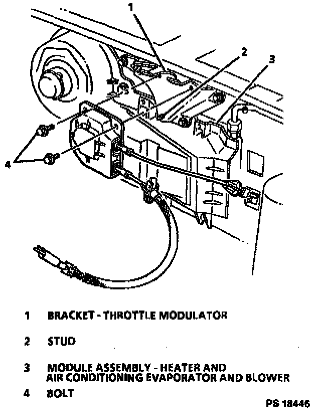 3. Bolts attaching throttle modulator to throttle modular bracket.