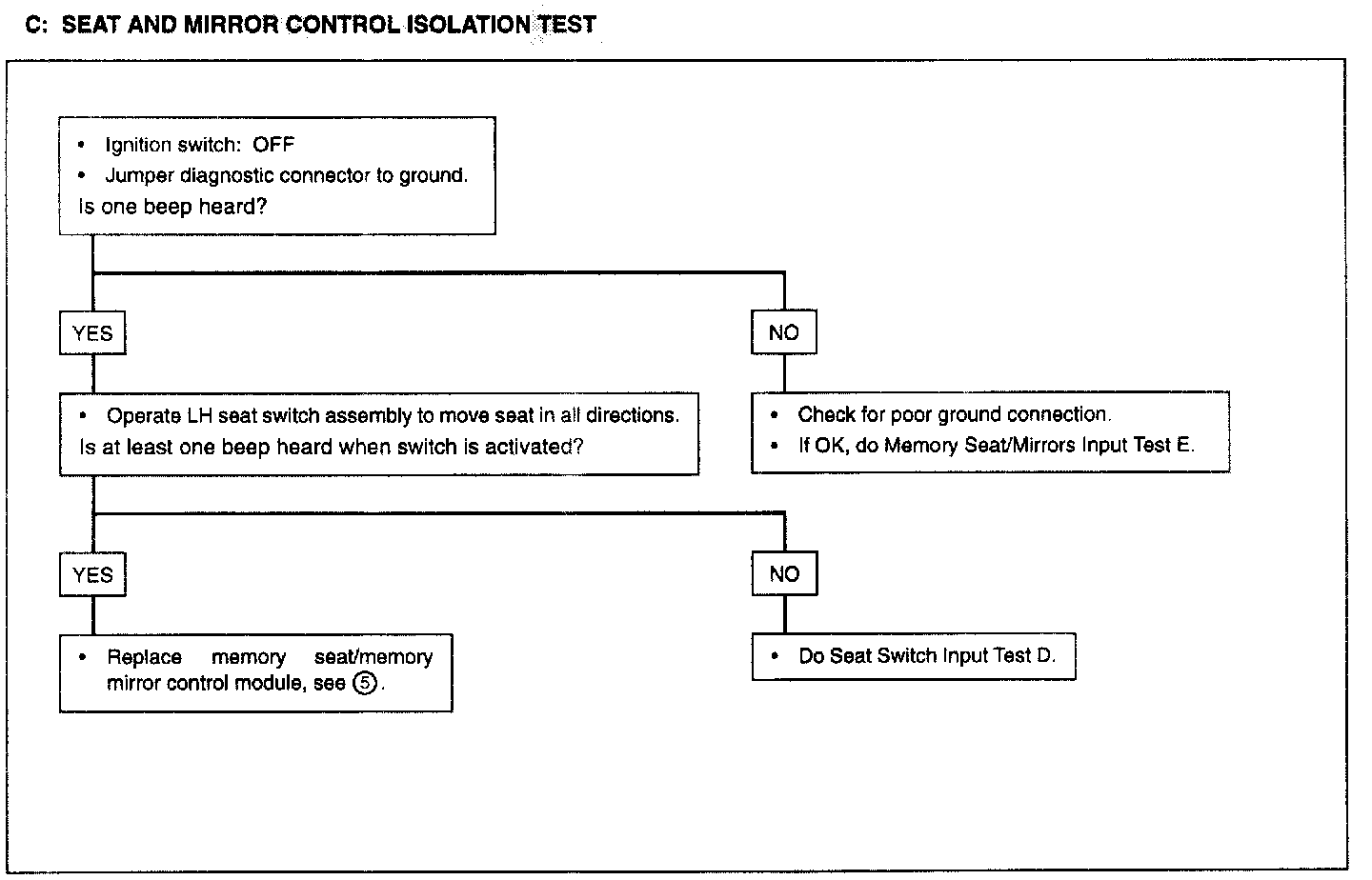 Test C: Seat And Mirror Control Isolation Test: