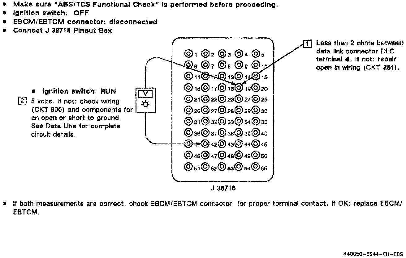 ^ When the ignition switch is first turned to RUN, the EBCM/EBTCM goes through a self-test lasting 2-4 seconds. During this test. the EBCM/EBTCM grounds terminal 52, causing the amber ANTILOCK indicator to light. This serves as an indicator bulb test.