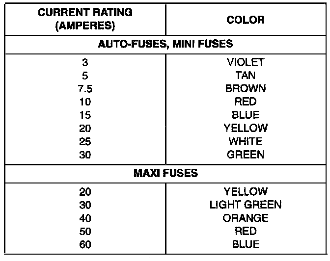 ^ Always replace a fuse with one of the same rating. Rating are molded in and color coded Refer to the above Rating and Color Code Chart.