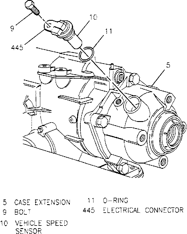 The vehicle speed sensor is bolted to the transaxle case extension.