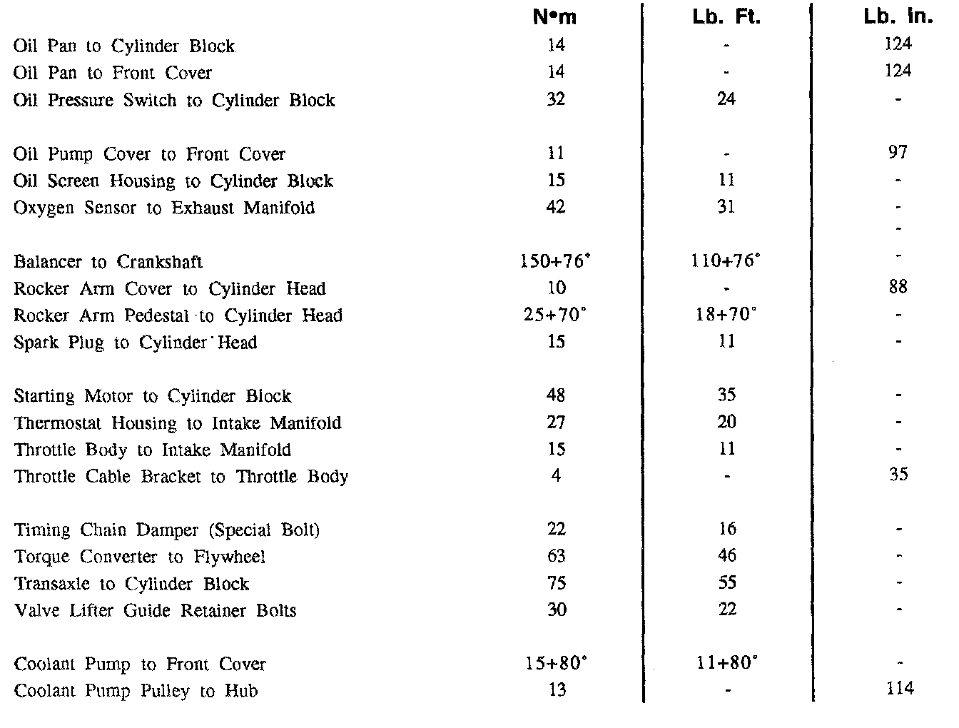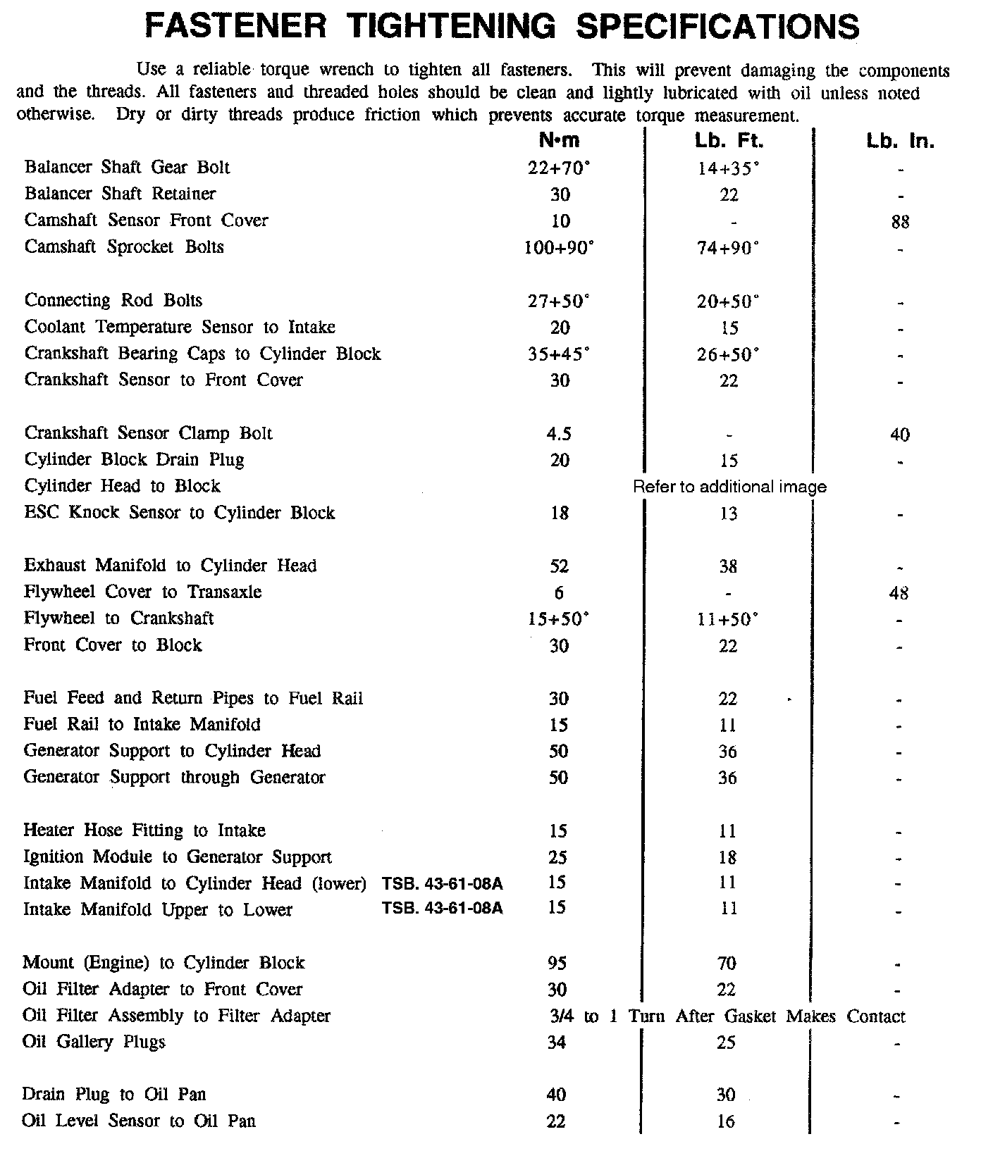 Fastener Tightening Specifications - Engine