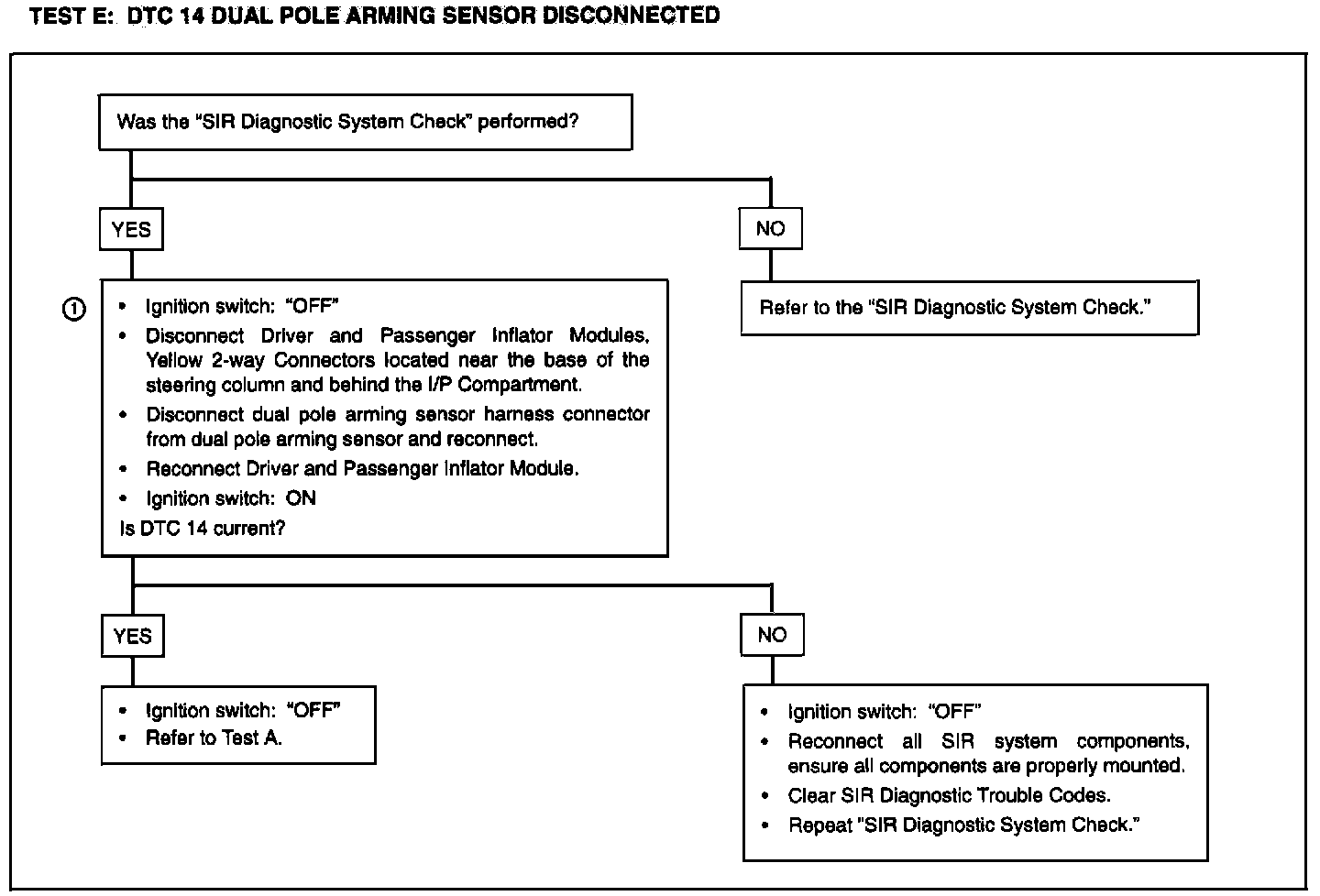 Test E: DTC 14 Dual Pole Arming Sensor Disconnected: