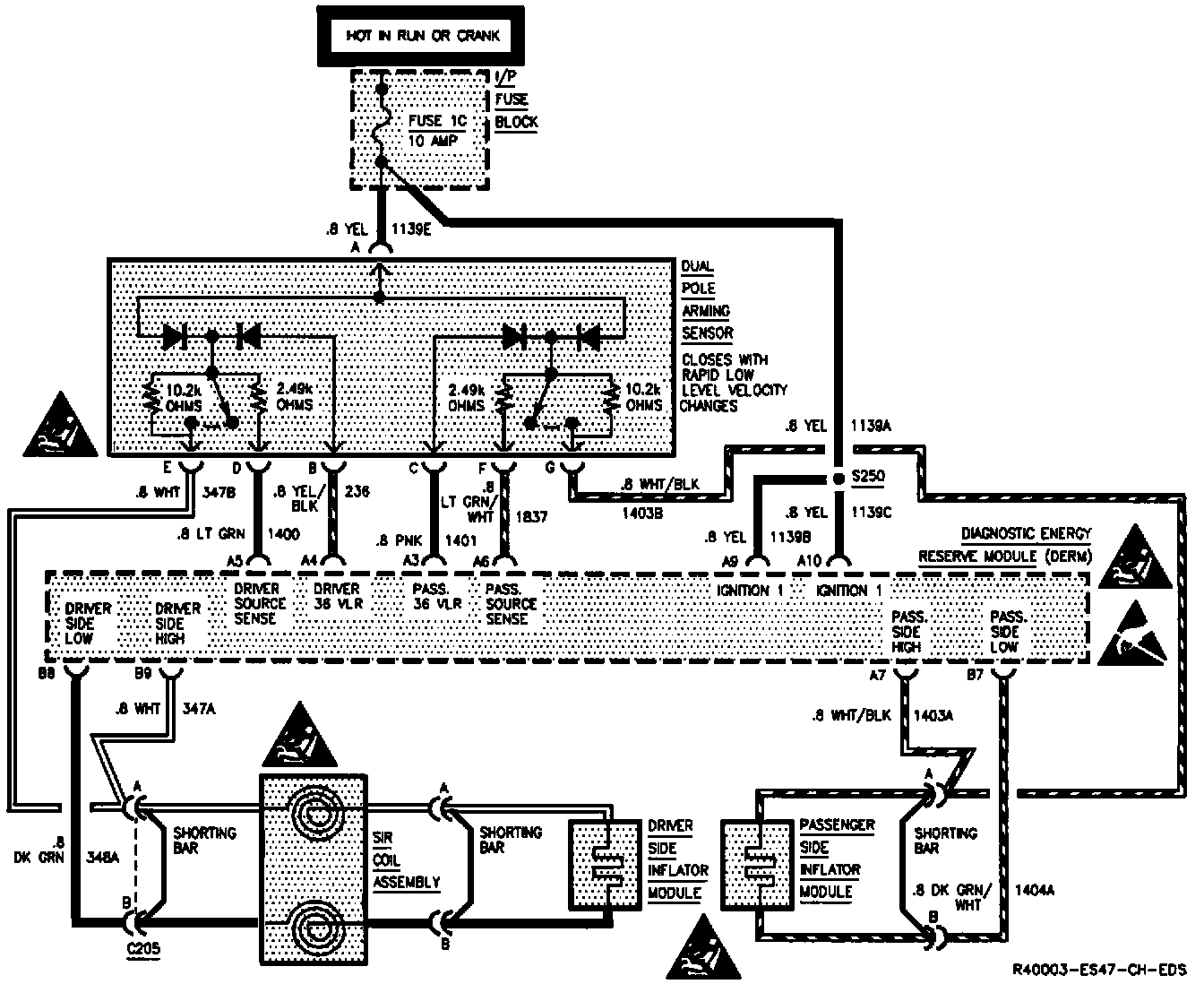 Action Taken: DERM turns "ON" the "INFLATABLE RESTRAINT" warning lamp and sets a Diagnostic Trouble Code.