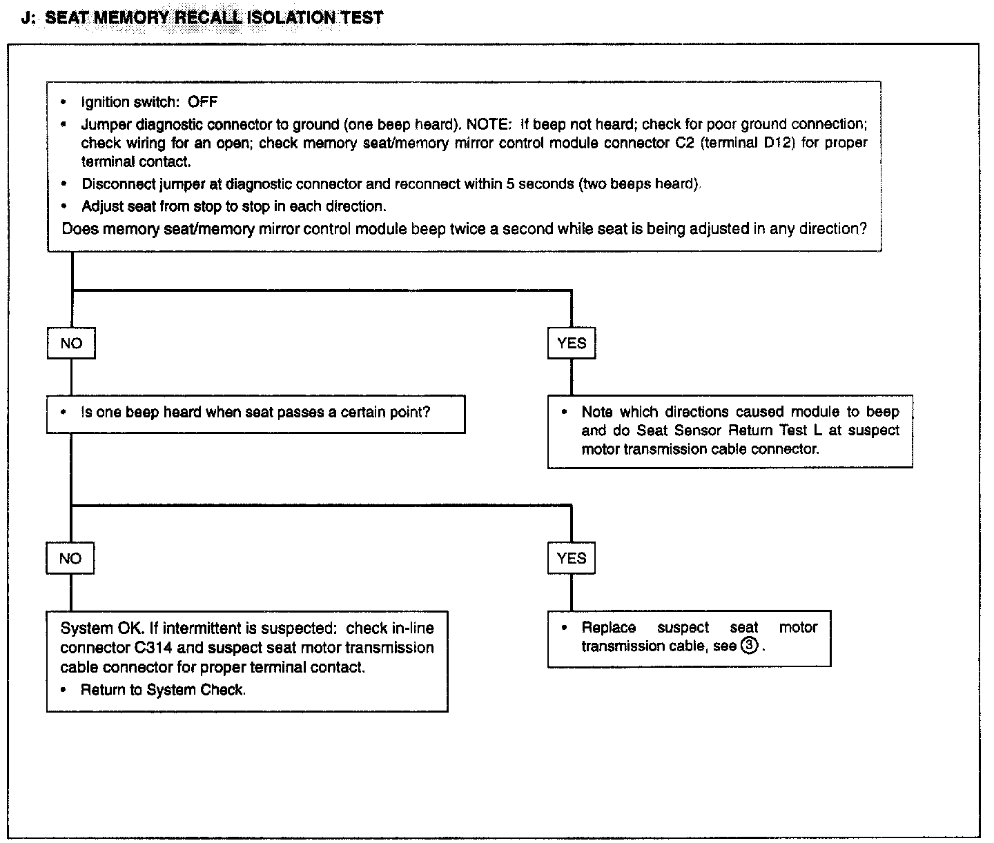Test J: Seat Memory Recall Isolation Test:
