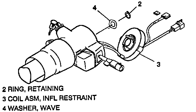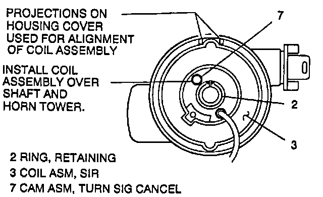 - Centering spring is pushed down, letting hub rotate while SIR coil (3) is removed from steering column. (If this happens center coil assembly).