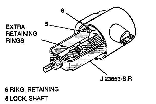 6. Remove shaft lock retaining ring using J 23653-SIR to push down shaft lock.