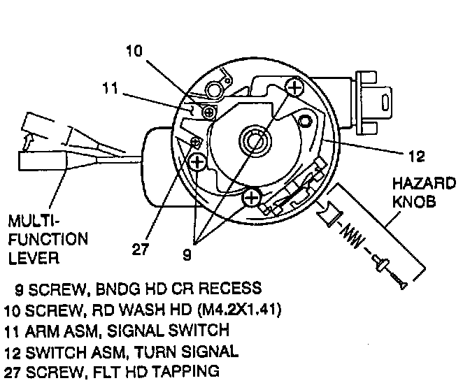 13. Remove multi-funtion lever and hazard knob assembly.