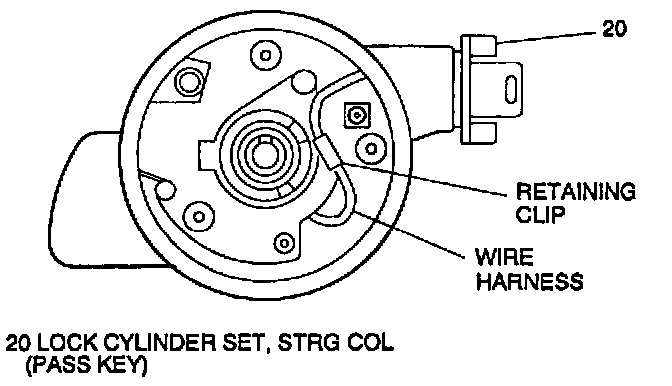 22. Remove pass key lock cylinder (20) and harness.