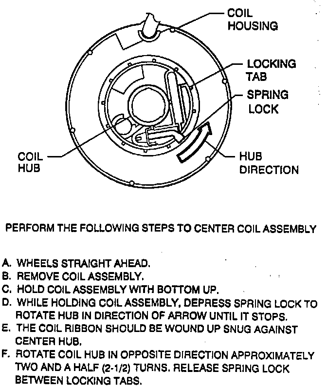 NOTE: If a new SIR coil assembly is being installed, assemble pre-centered coil assembly to steering column. Remove centering tab and dispose.
