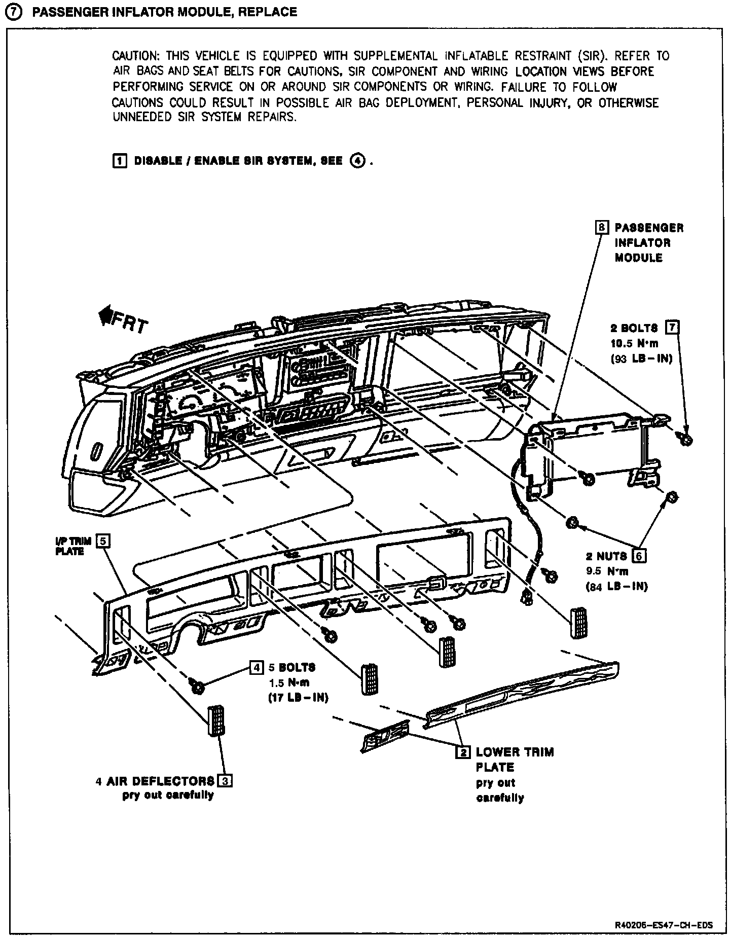 Passenger Inflator Module, Replace: