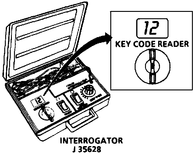 The J 35628 Interrogator or equivalent must be used to determine the proper electrical code of the key.
