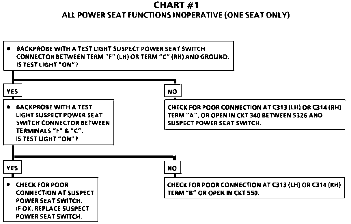Chart #1-All Power Seat Functions Inoperative (One Seat Only):