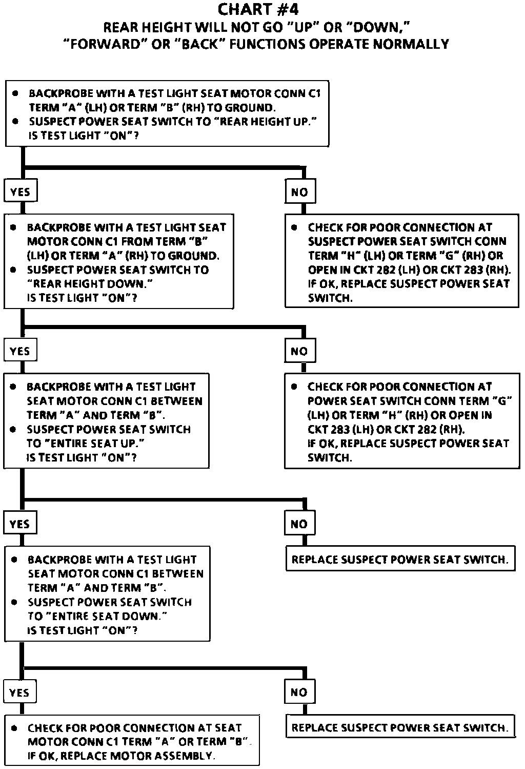 Chart #4-Rear Height Will Not Go UP/DOWN, FORWARD/BACK Functions Operate Normally: