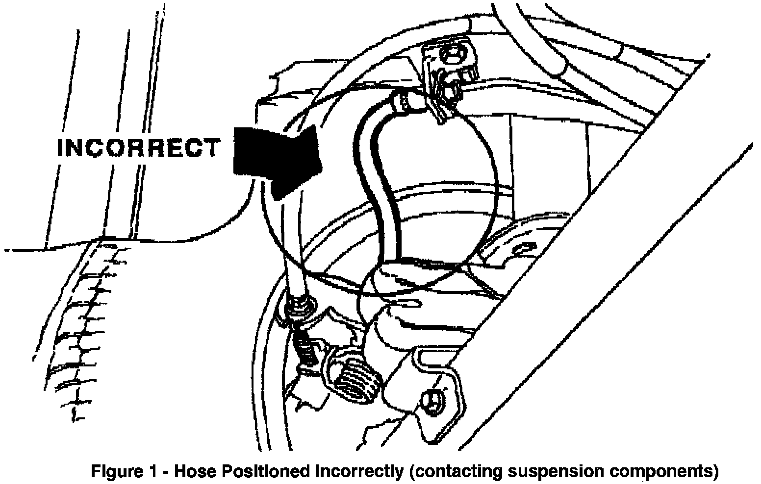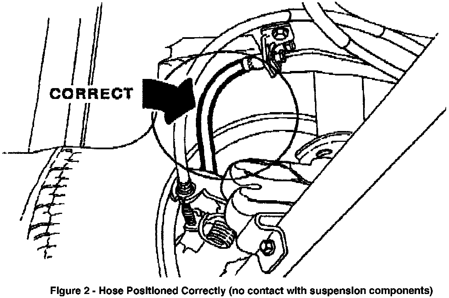 2. Inspect both (Right & Left) rear brake hoses for proper position (see Figure 1 and Figure 2).