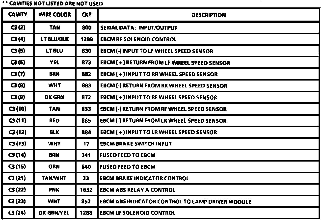 Electronic Brake Control Module (EBCM) Connectors: C1, C2 & C3: