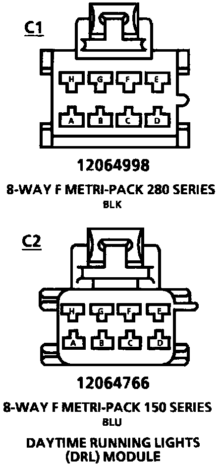 Daytime Running Lights (DRL) Module: C1 & C2:
