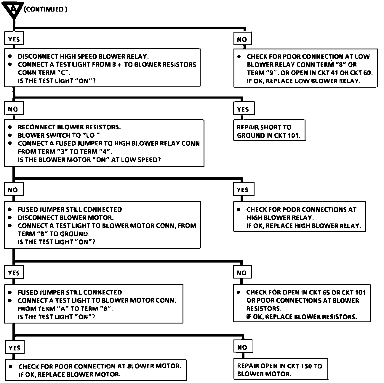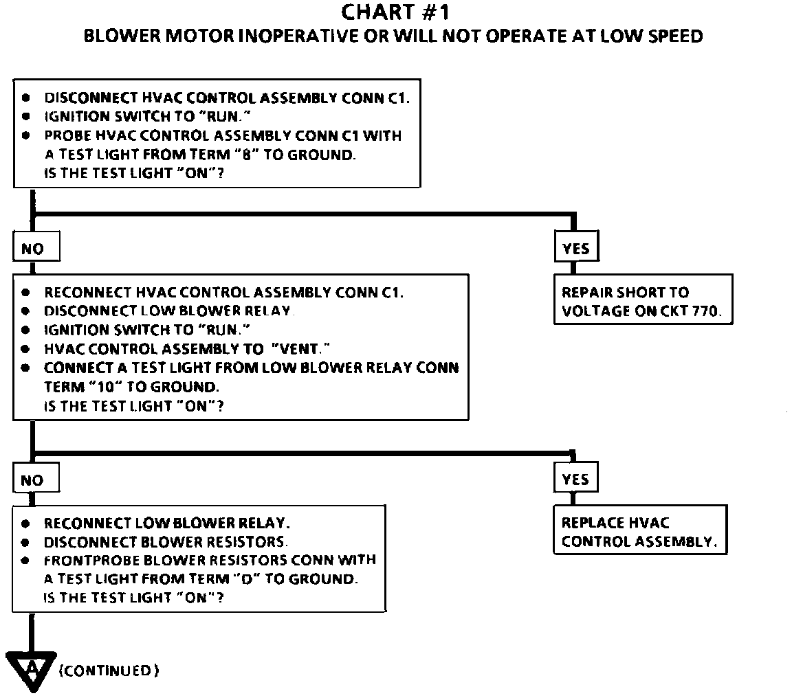 Chart #1-Blower Motor Inoperative/Will Not Operate At LO Speed (Part 2 Of 2):