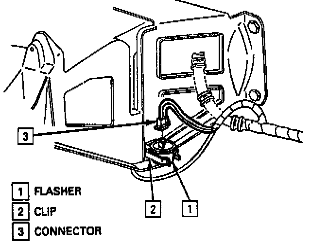 The Turn Signal Flasher is located behind the Instrument Panel (I/P), right of steering column.