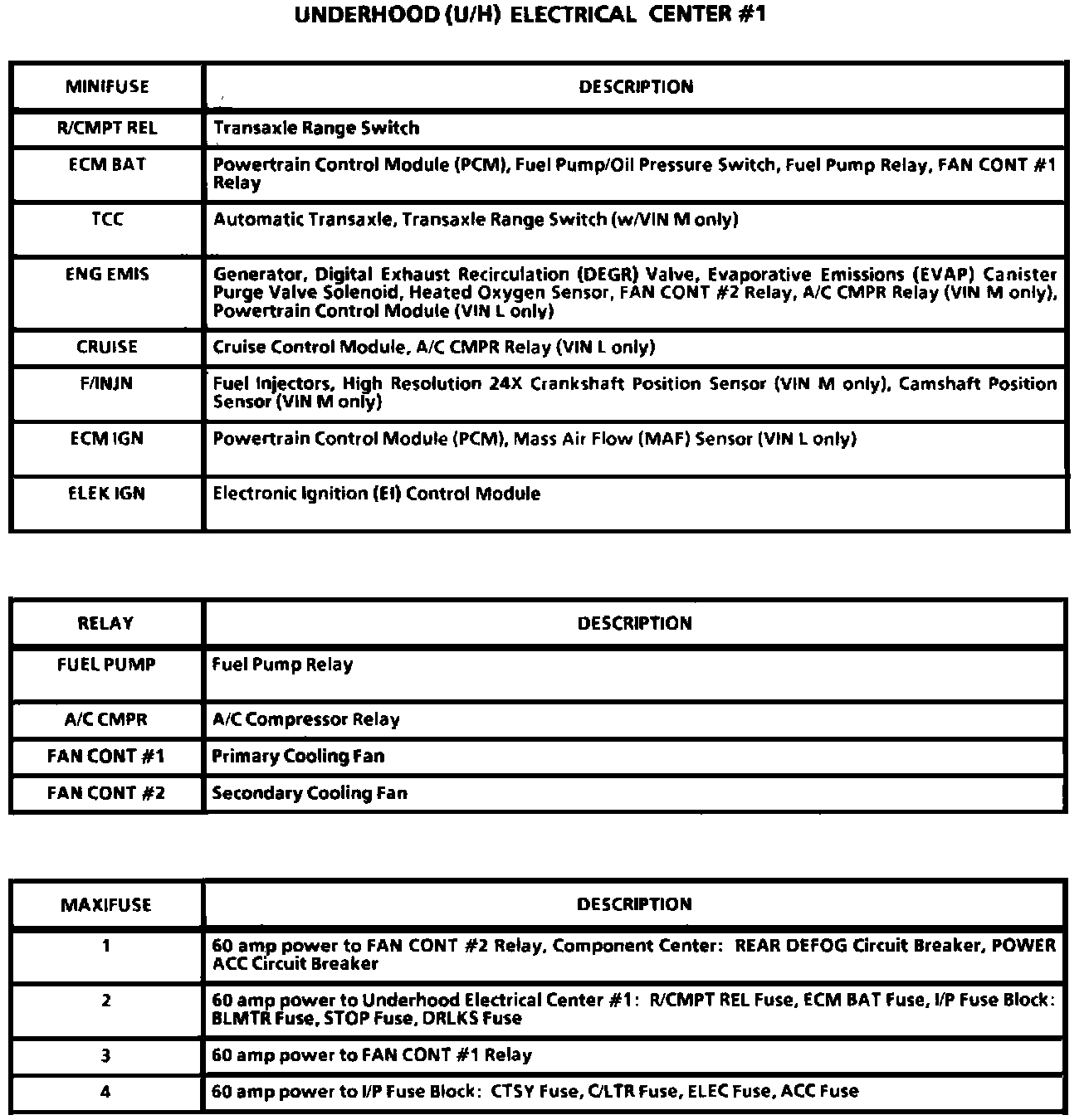 Underhood (U/H) Electrical Center #1: