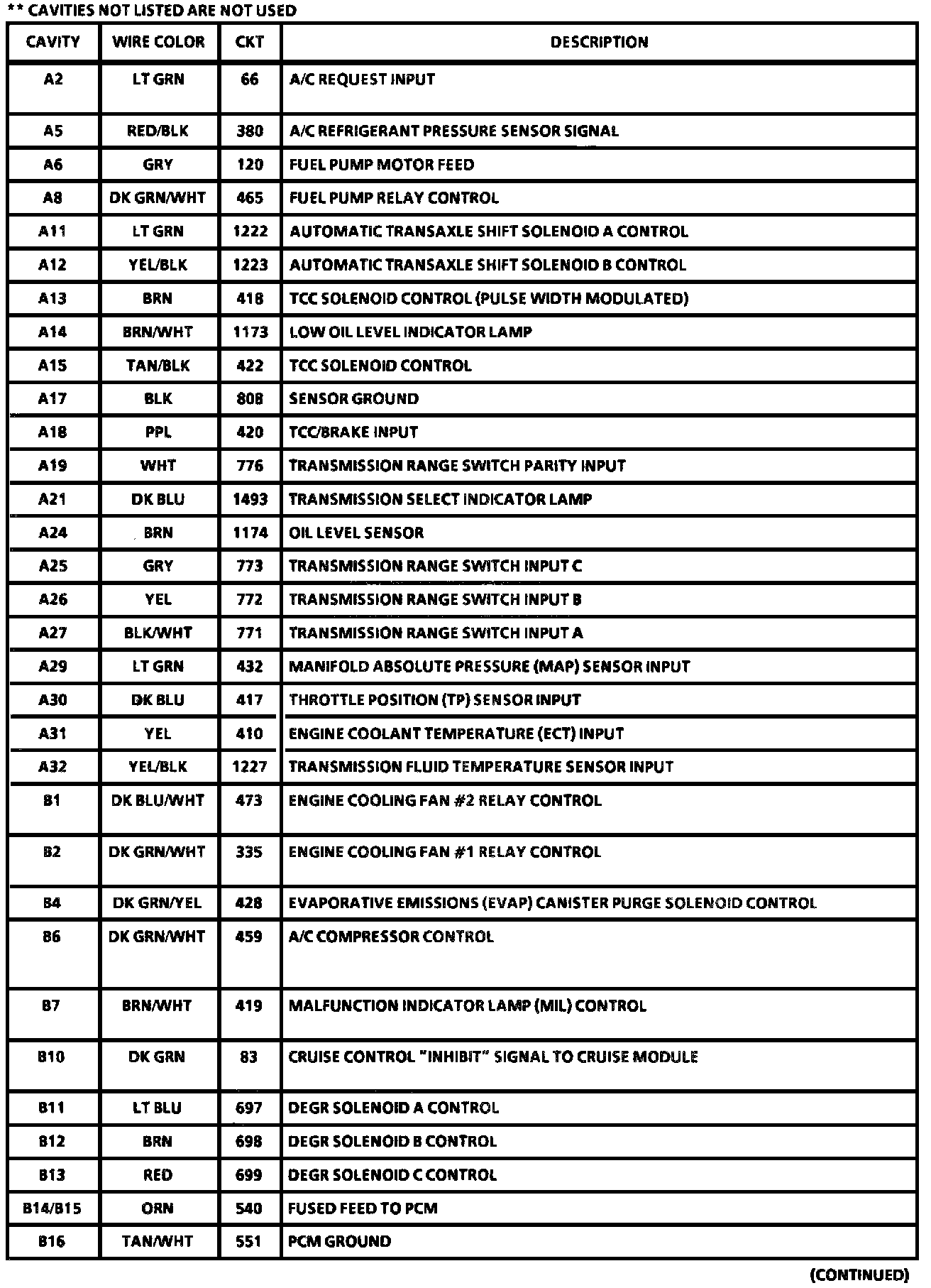 Powertrain Control Module (PCM) Connectors: A, B & C (Part 2 Of 2):