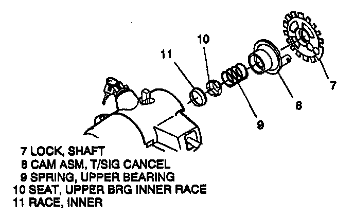 - Inner block tooth of lock (7) must be aligned with block tooth of race and upper shaft assembly (56).
