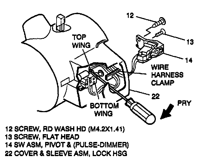 17. Pivot and pulse dimmer switch assembly (14) wire harness through steering column.