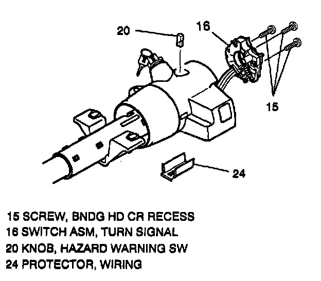 14. Turn signal switch assembly (16) wire harness through steering column.