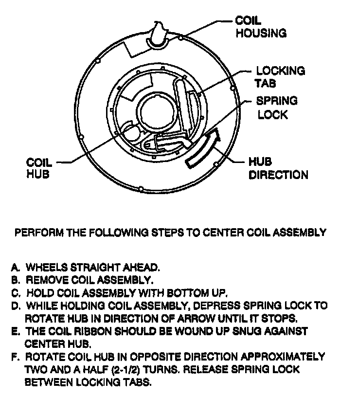 - Centering spring is pushed down, letting hub rotate while coil (3) is removed from steering column. (If this occurs, see figure 15).