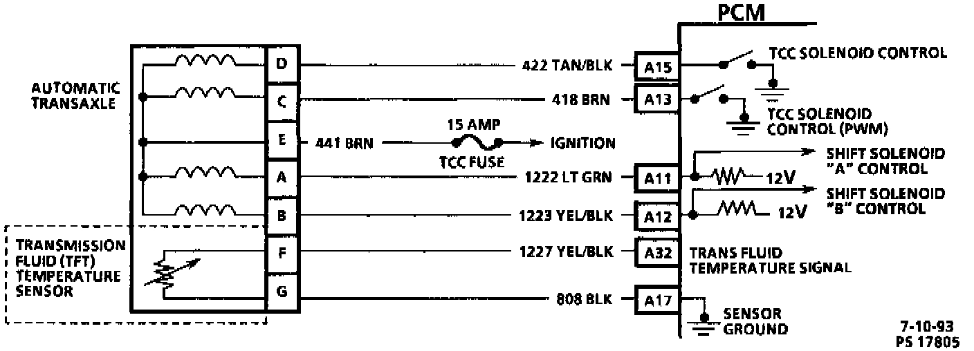 If the transaxle range switch indicates manual low position, the PCM will keep both solenoids "A" and "B" energized until 5400 RPM at which point the PCM will force a shift by de-energizing solenoid "A". Manual 2nd and manual 3rd are controlled hydraulically within the transaxle.