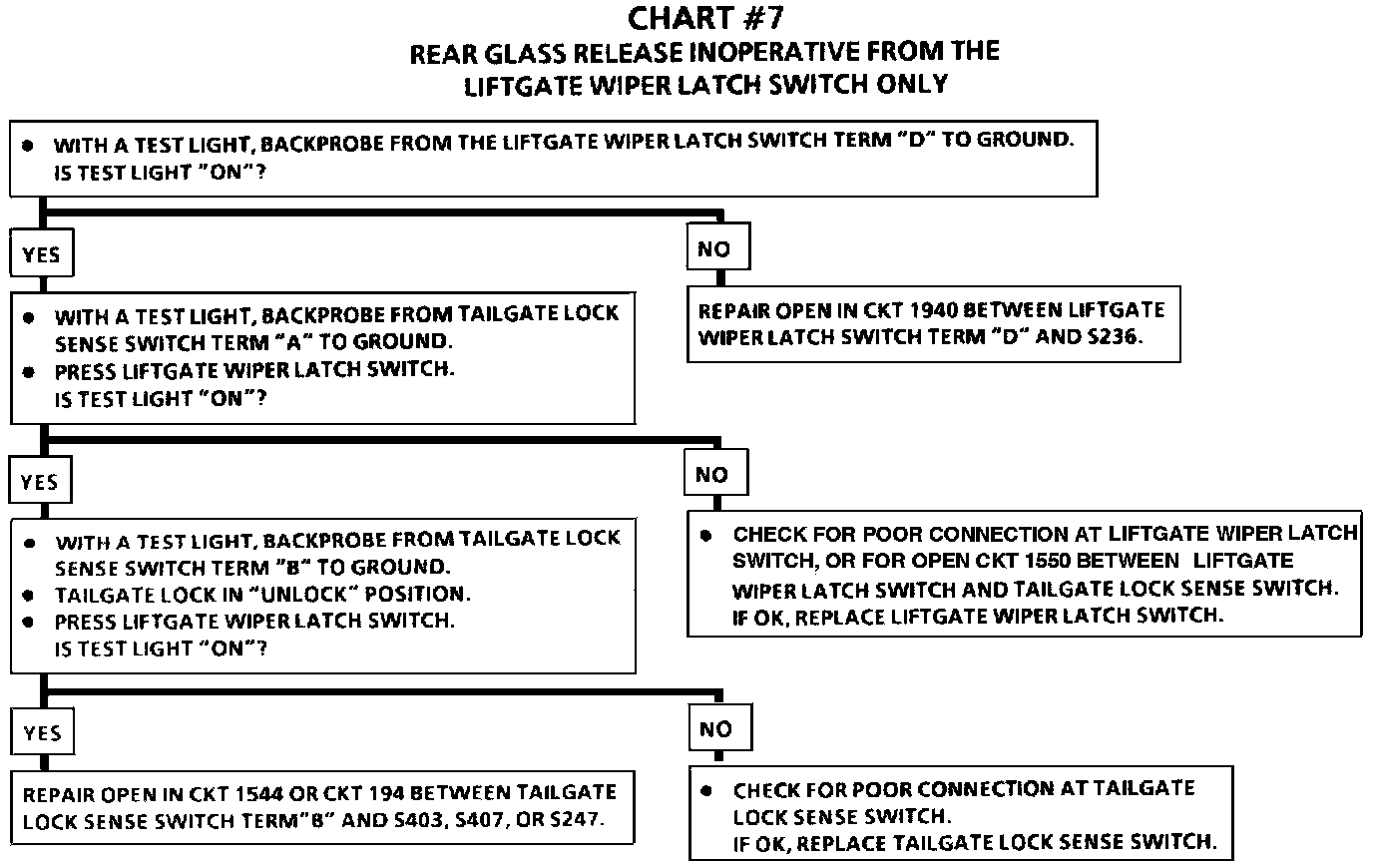 Chart #7 Rear Glass Release Inoperative From The Liftgate Wiper Latch SW Only: