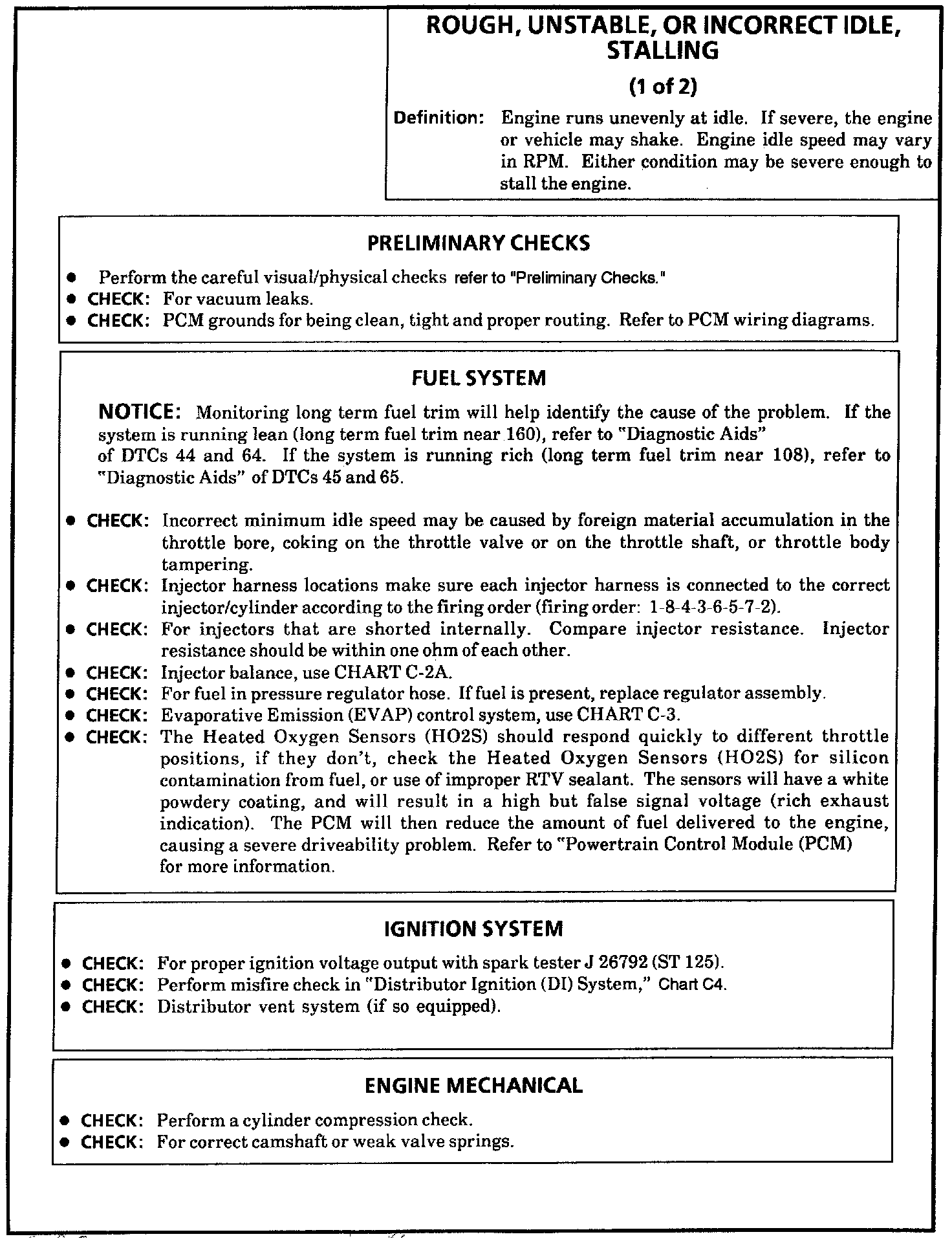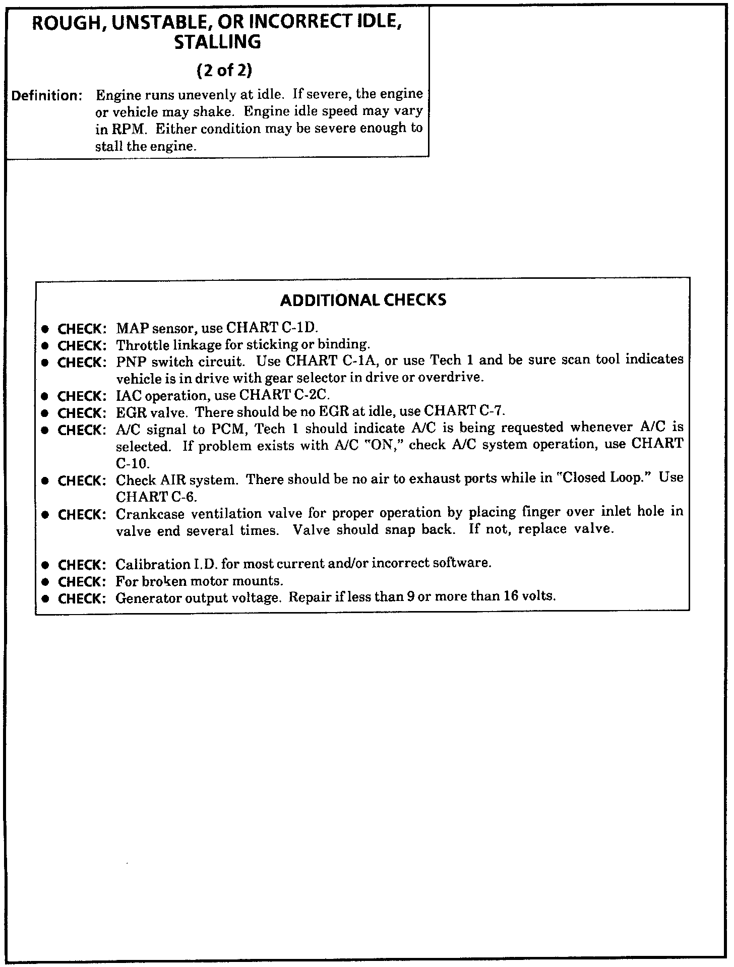 Rough, Unstable, or Incorrect Idle, Stalling