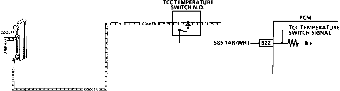 If the TCC temperature switch and external wiring checks okay, verify circuit ground integrity through the trans fluid cooler pipes.