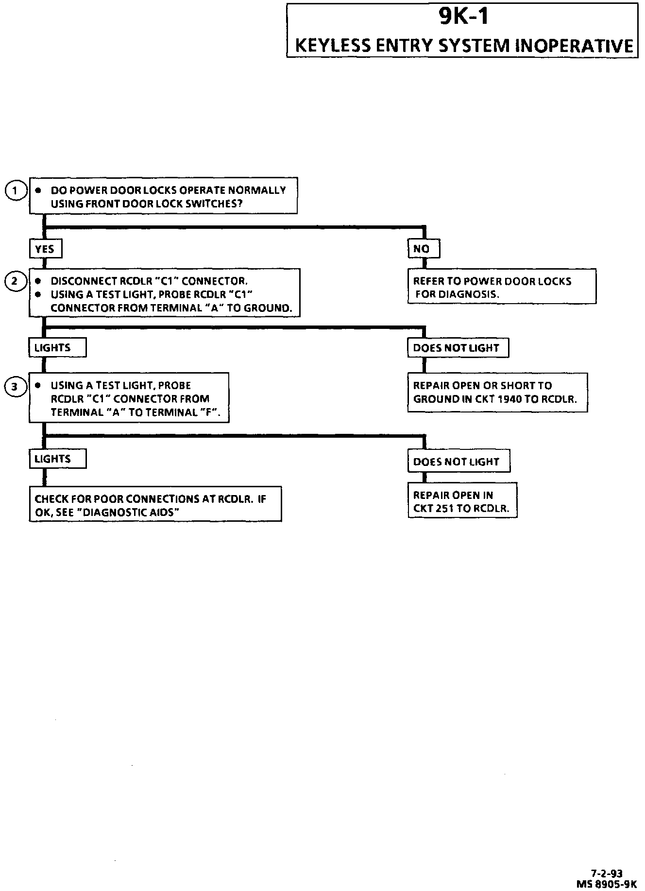 9K-1 Remote Keyless Entry System Inoperative