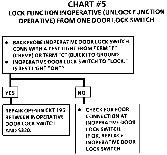 Chart #5 Lock Function Inoperative (Unlock Function Operative) From One Door Lock SW: