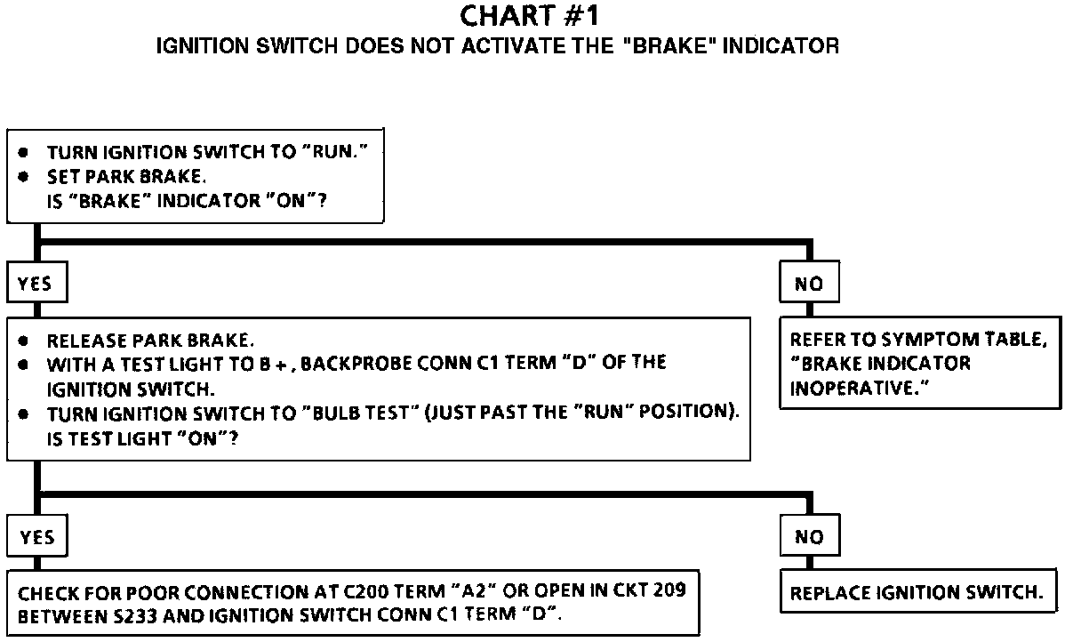 Chart 1 Ignition Switch Doesn't Activate the Brake Indicator