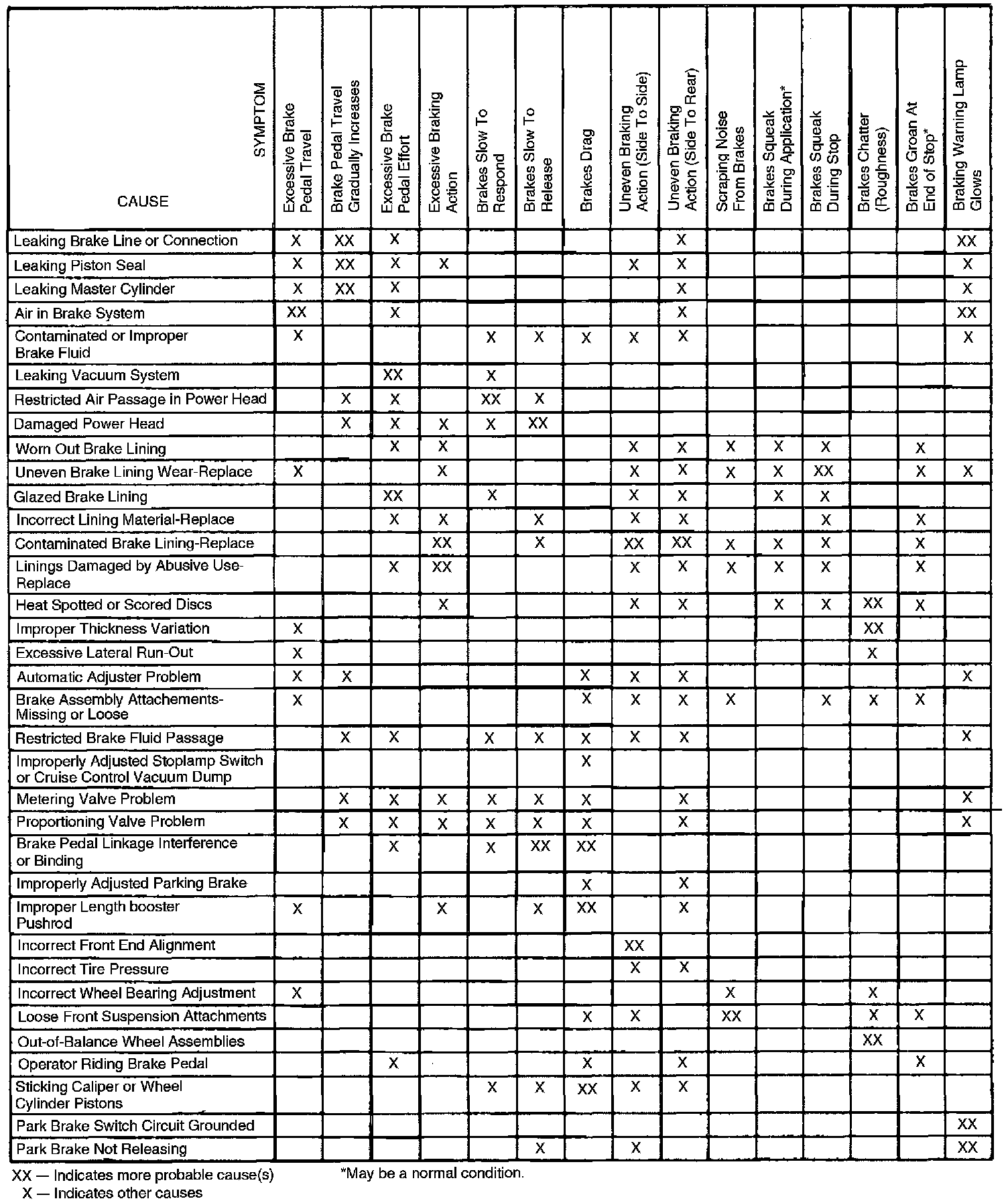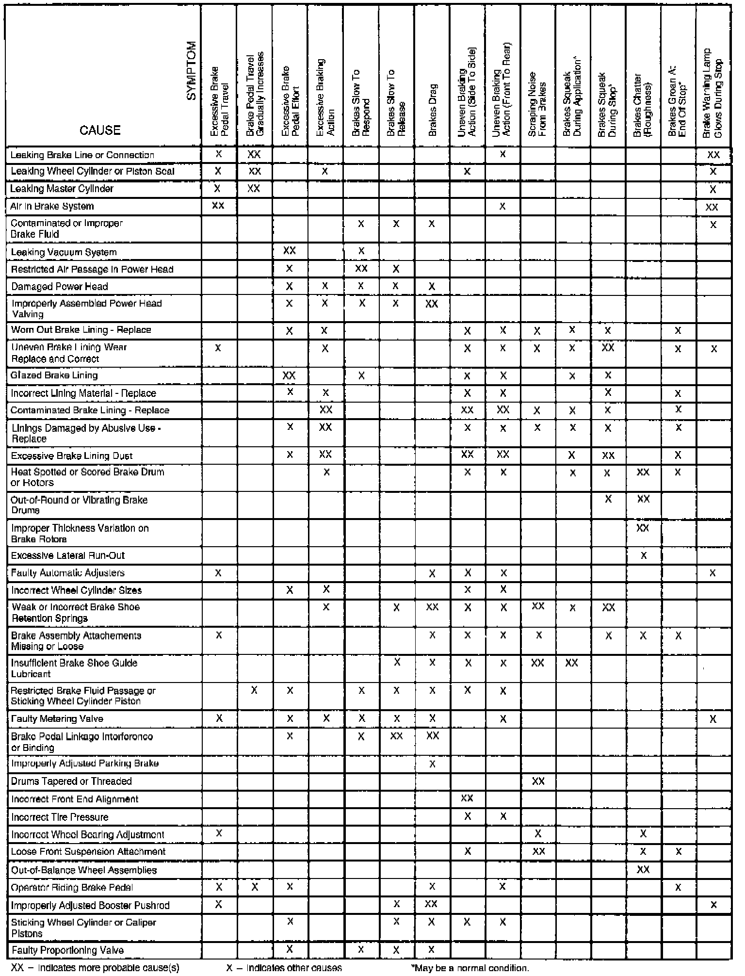 Fig. 15 Brake Diagnosis Chart. Front Disc/Rear Drum System: