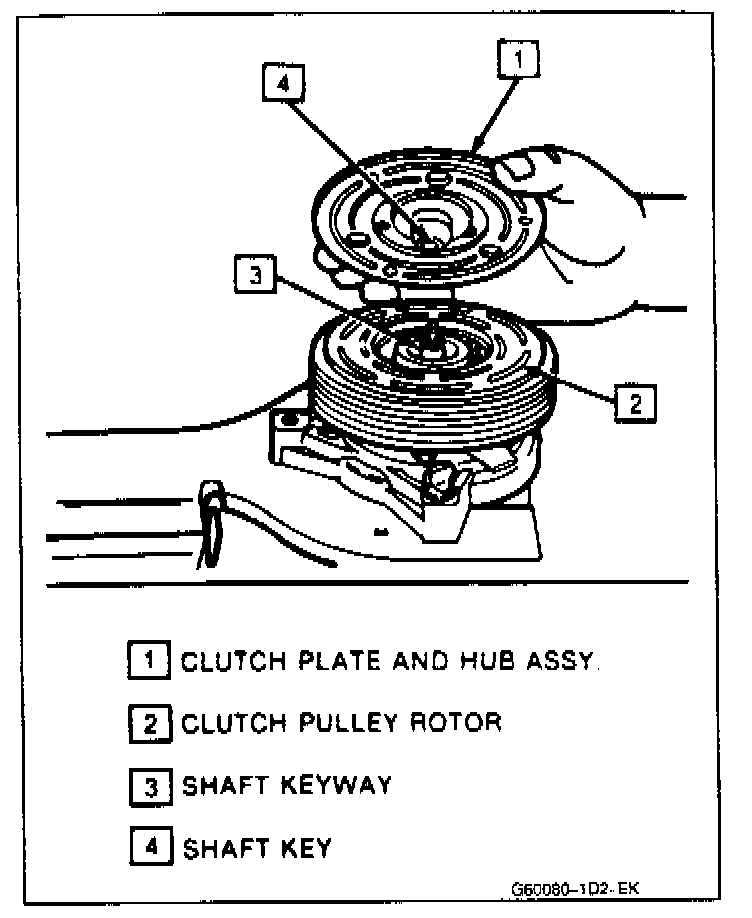3. Align the shaft key with the shaft keyway and place the clutch plate and the hub assembly onto the compressor