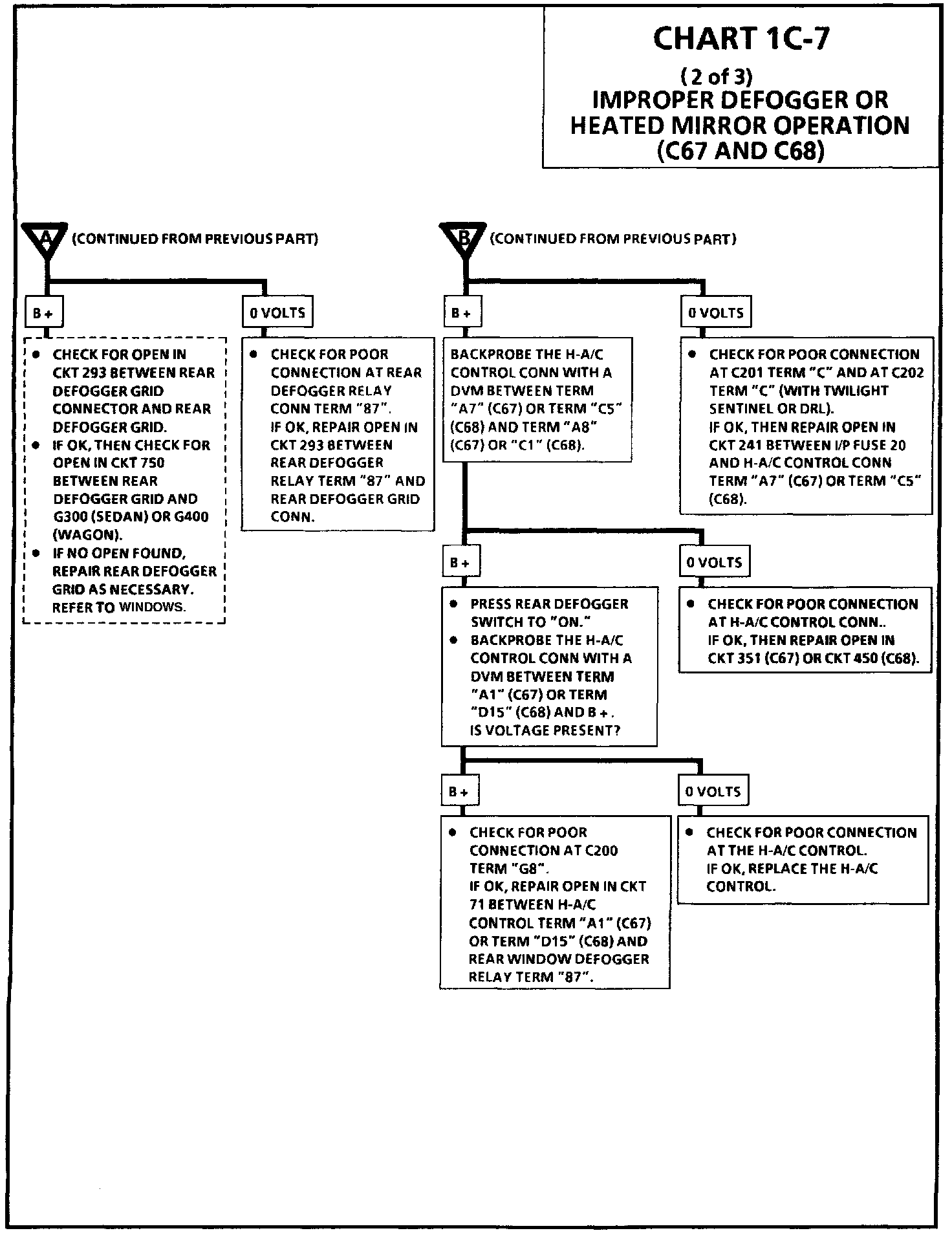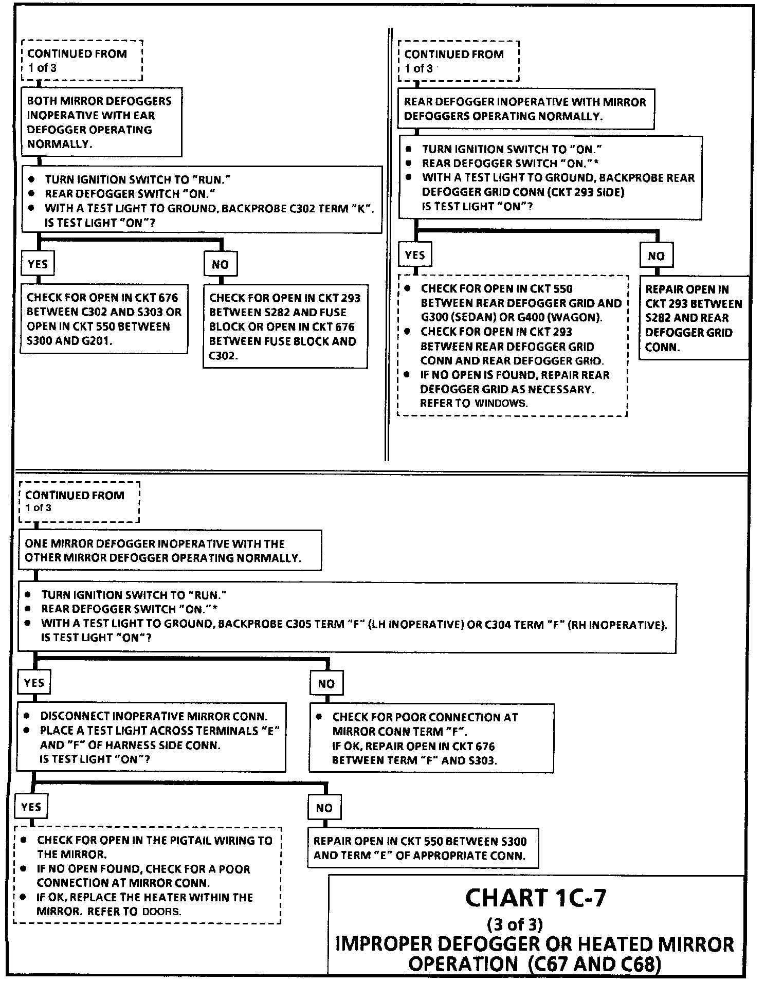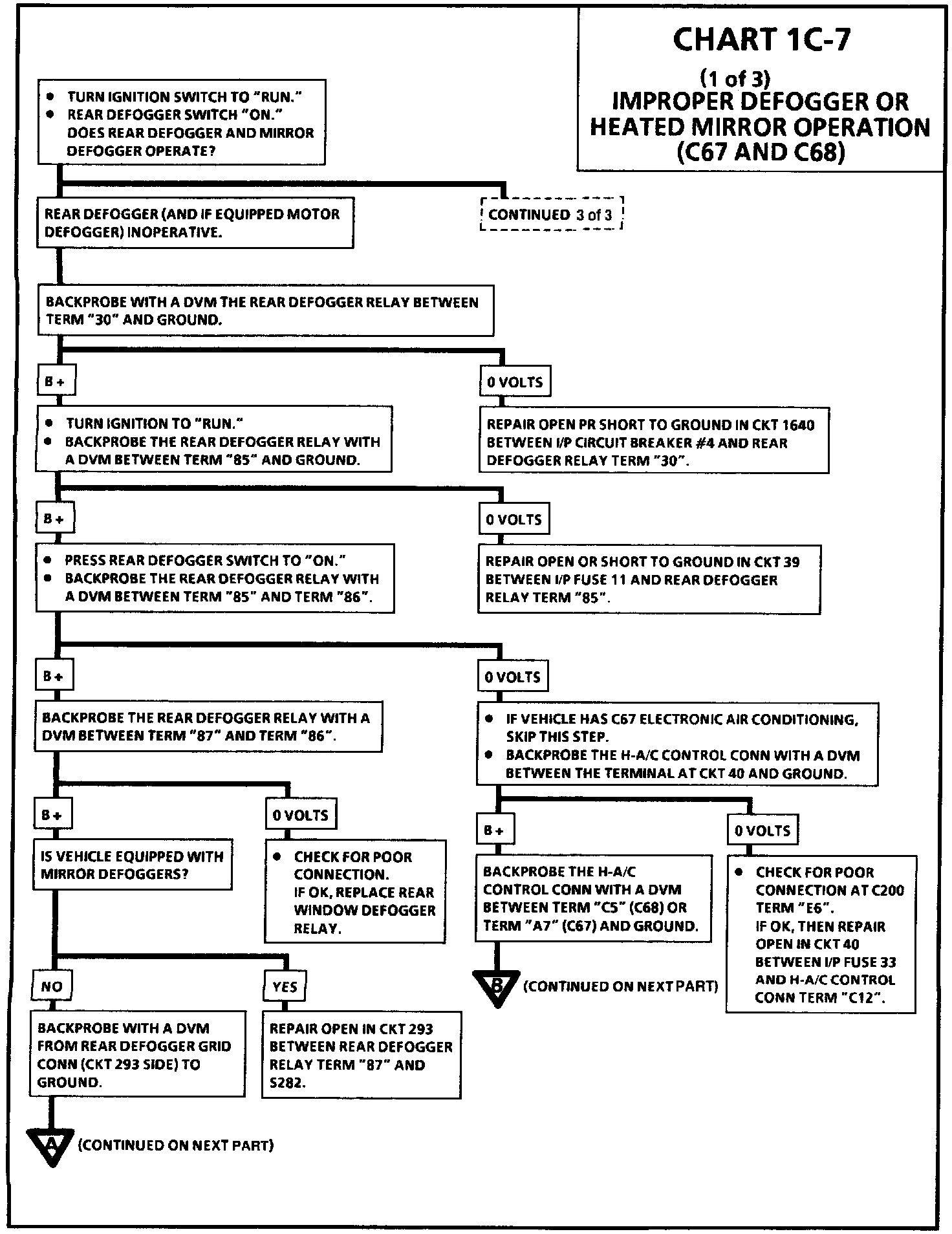 Chart 1C-7 Improper Defogger or Heated Mirror Operation