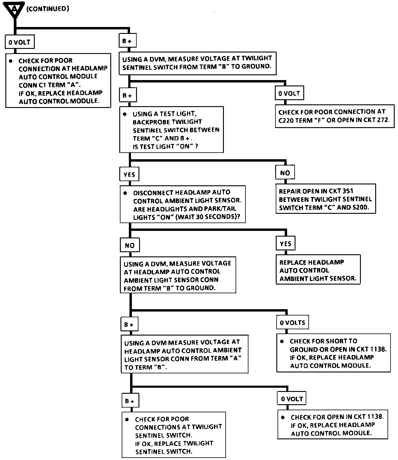 Chart #4 Using Twilight Sentinel Control: Headlights, Tail, Front Park & Opera Lamps Are Inoperative, Headlight SW Operates Normally (Part 2 Of 2):