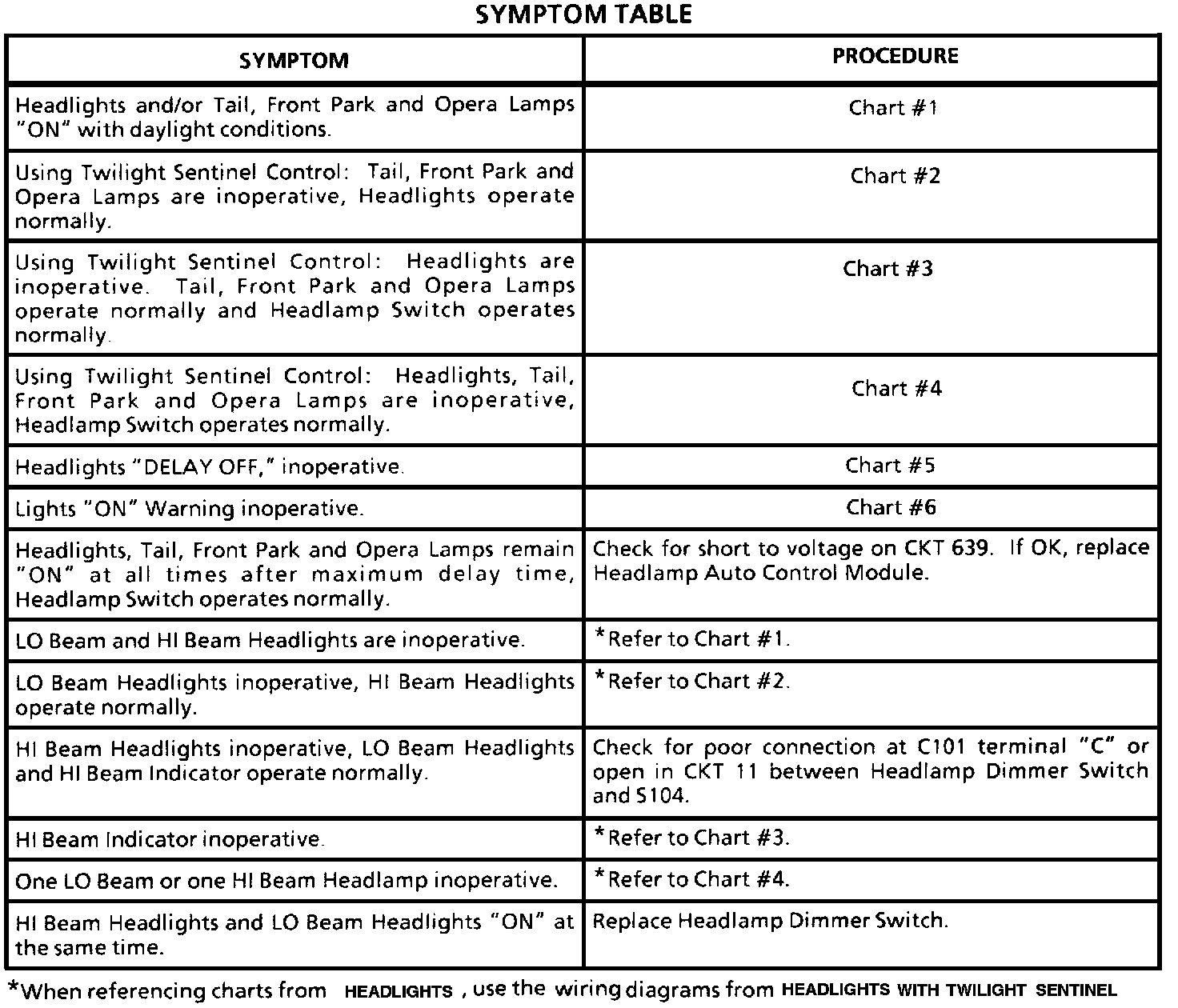 Symptom Table
