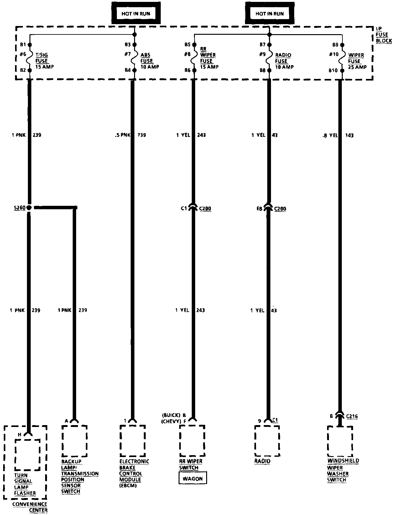 T/SIG, ABS, RR Wiper, Radio And Wiper Fuses: