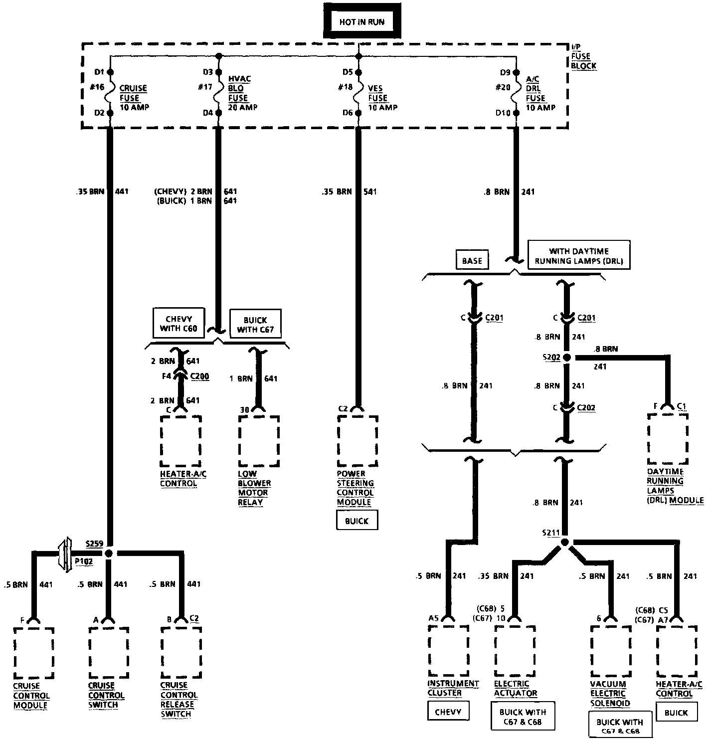 Cruise, HVAC BLO, VES And A/C DRL Fuses: