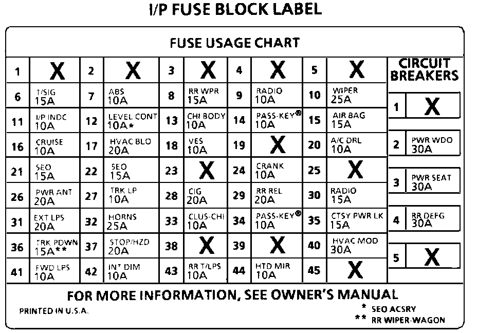 Instrument Panel (I/P) Fuse Block Label