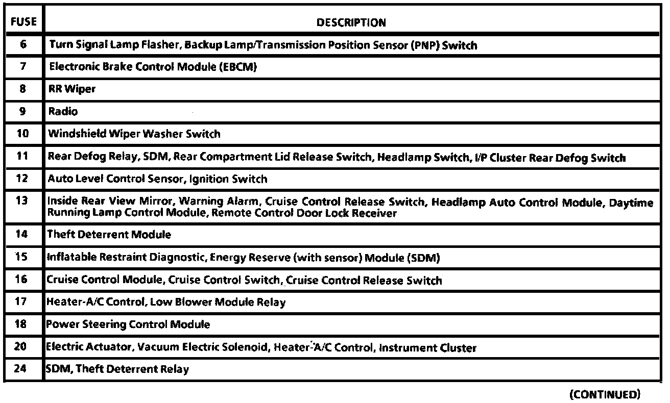 Fuse Data: I/P Fuse Block Label (Part 2 Of 3):