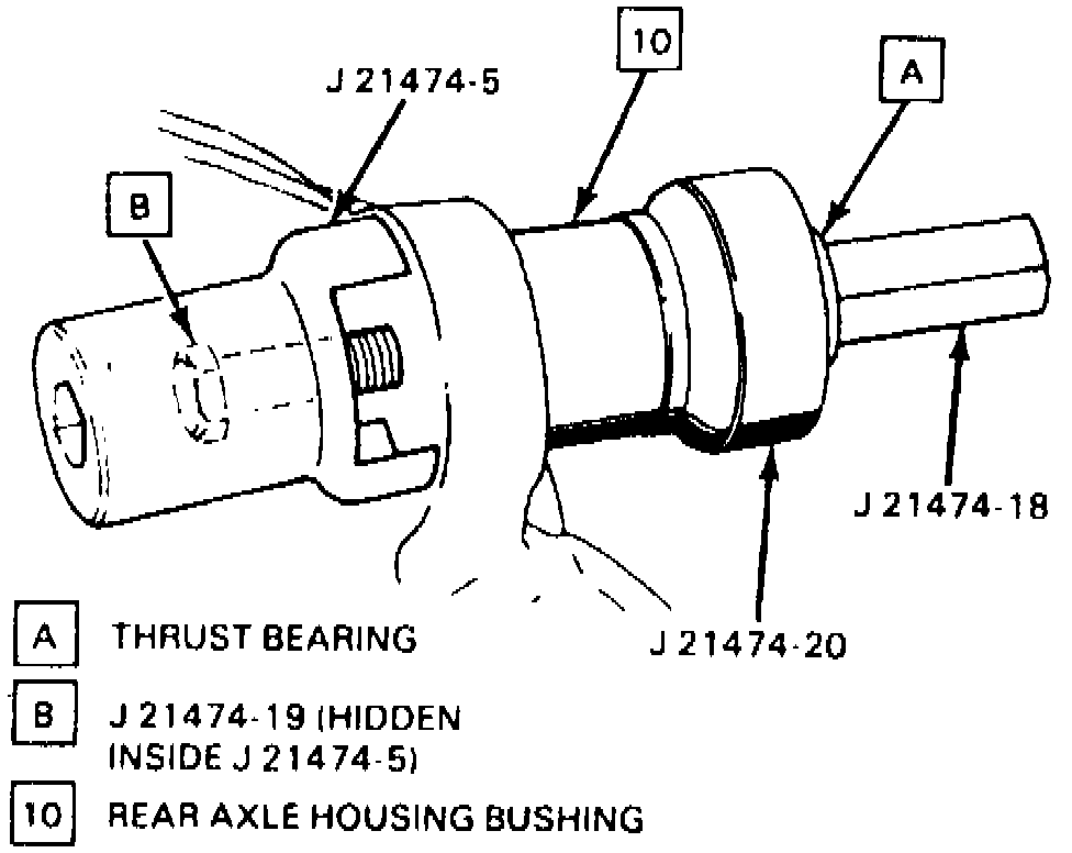 The upper control arm rear bushing, which is pressed into the differential carrier, can be replaced using the following procedure: