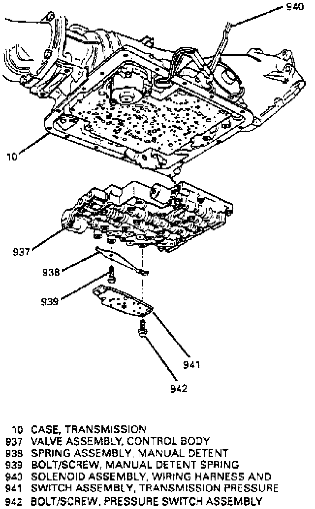 5. Remove TCC solenoid bolts and solenoid assembly with O-ring seal.