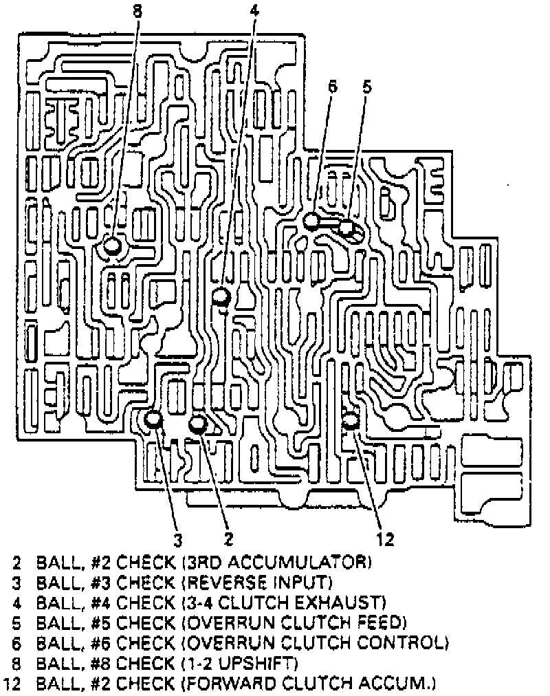 a. Before installing valve body, ensure valve body and transmission case check balls are in their correct location. Refer to Fig. 11 and Fig. 12 for check ball locations.