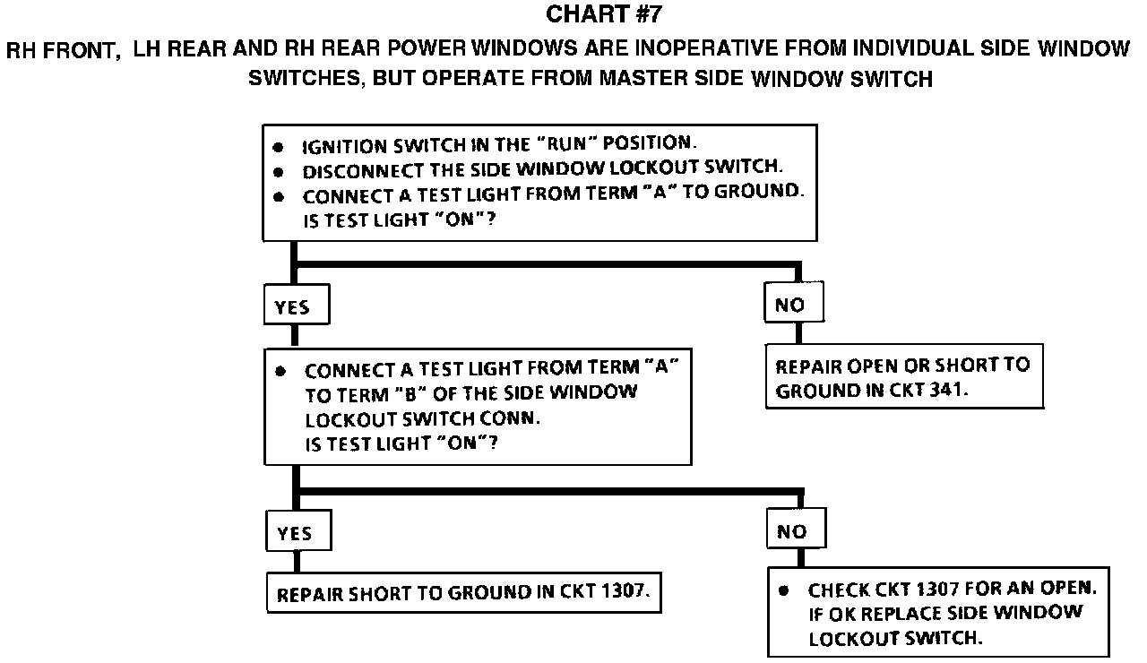 Chart #7 RH Front, LH Rear And RH Rear Power Windows Are Inoperative From Individual Side Window Switches, But Operate From Master Side Window SW: